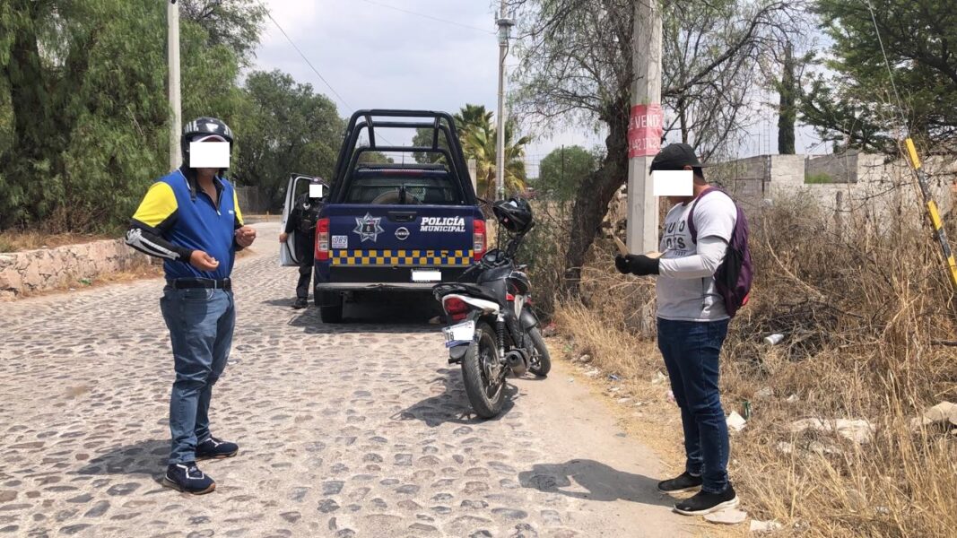 Elementos de la Secretaría de Seguridad Pública municipal aseguraron una motocicleta que presentaba reporte de robo y detuvieron a los dos tripulantes.