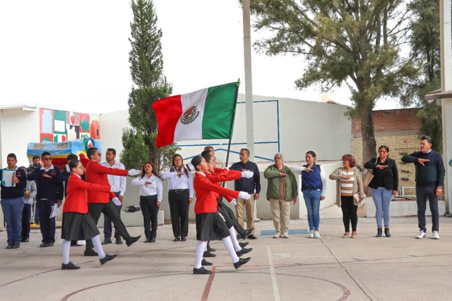 Uno de los momentos más destacados de la jornada fue el reconocimiento a la escolta de la Telesecundaria, que recientemente obtuvo un destacado tercer lugar a nivel nacional en el Concurso de Escoltas realizado en Morelia, Michoacán, en febrero pasado. La síndico municipal destacó el esfuerzo y dedicación de los estudiantes, así como la labor de los docentes que han acompañado a los jóvenes en este importante proceso. Este logro refleja la disciplina y el trabajo colectivo de la comunidad escolar.