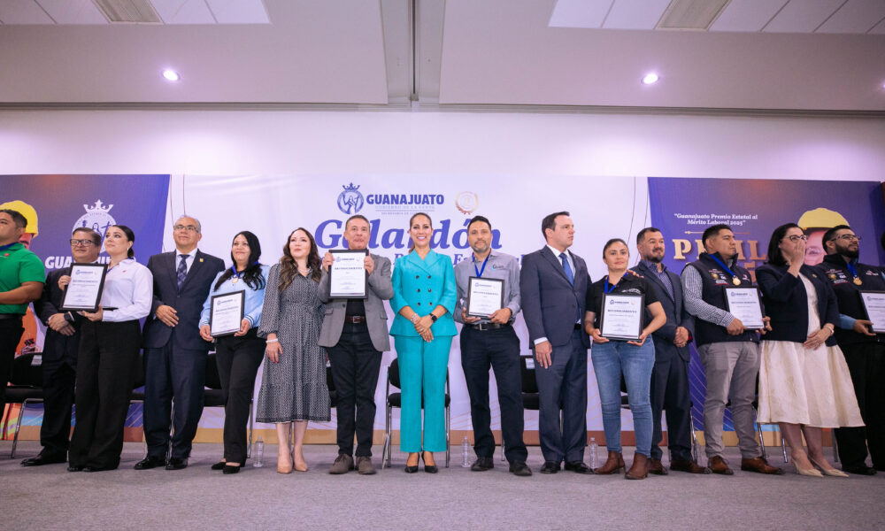 La Gobernadora de la Gente encabezó la entrega del “Galardón Guanajuato Premio Estatal al Mérito Laboral 2025”, en su décimo octava edición. La finalidad es impulsar una cultura del reconocimiento, así como fortalecer la relación entre empresas y trabajadores.