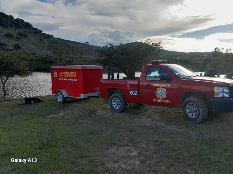 Personal de cuerpo de Bomberos Voluntarios de San José De Iturbide acudieron al llamado con unidades y equipamiento de buceo para buscar en el agua a la joven.
