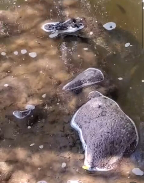 Poco más tarde, se le ve sobre las piedras asomando la boca.